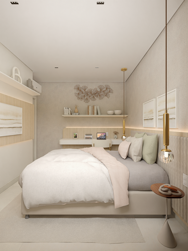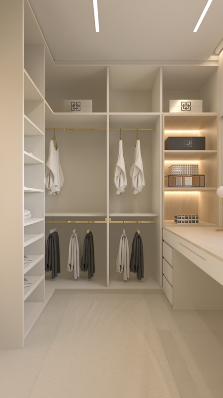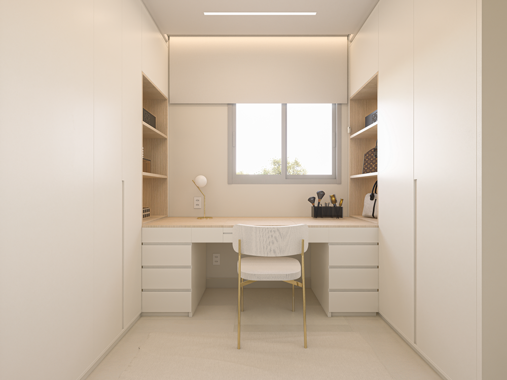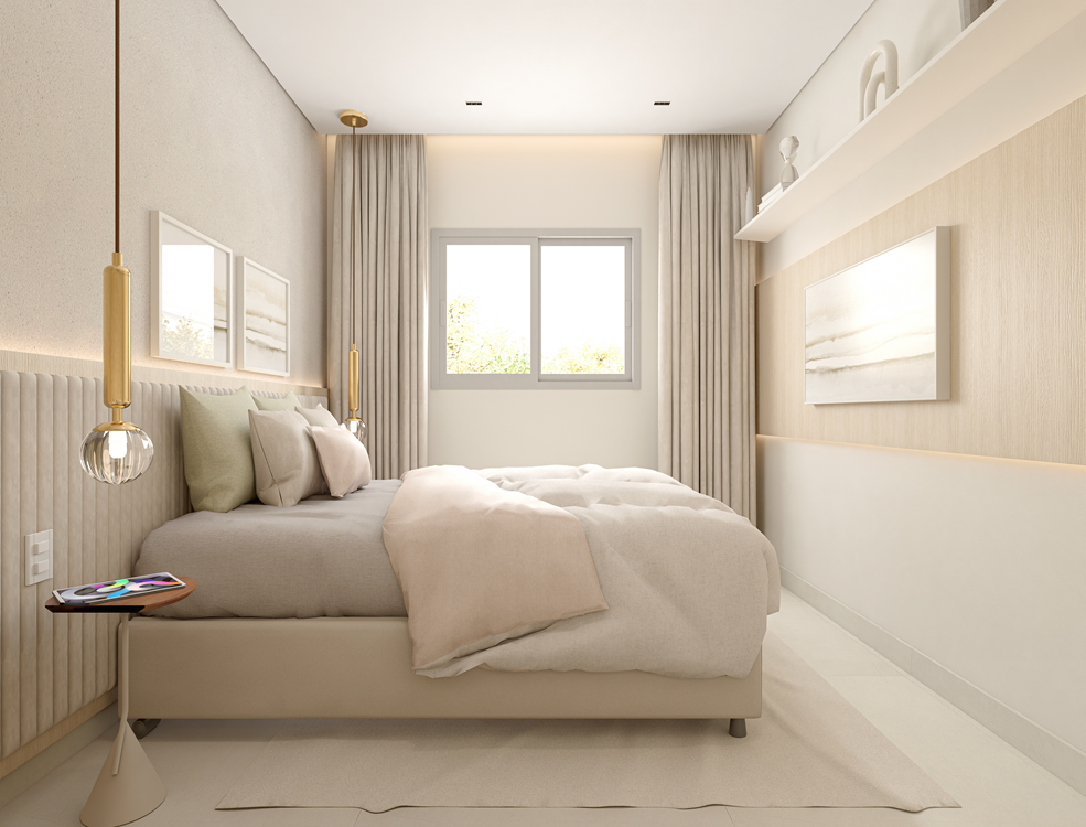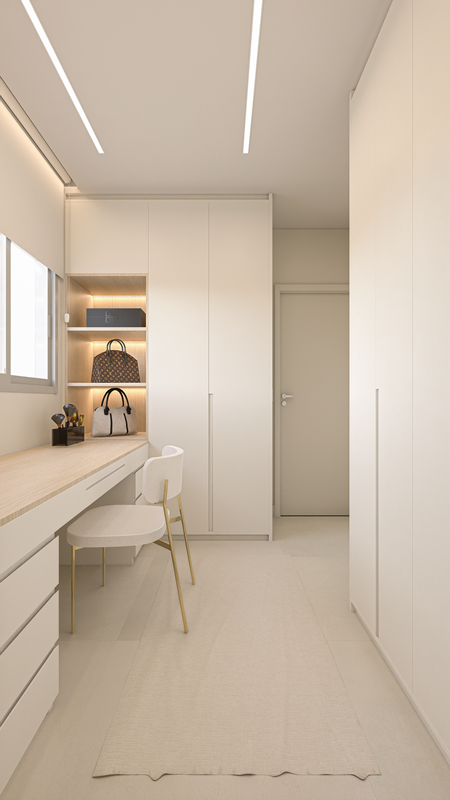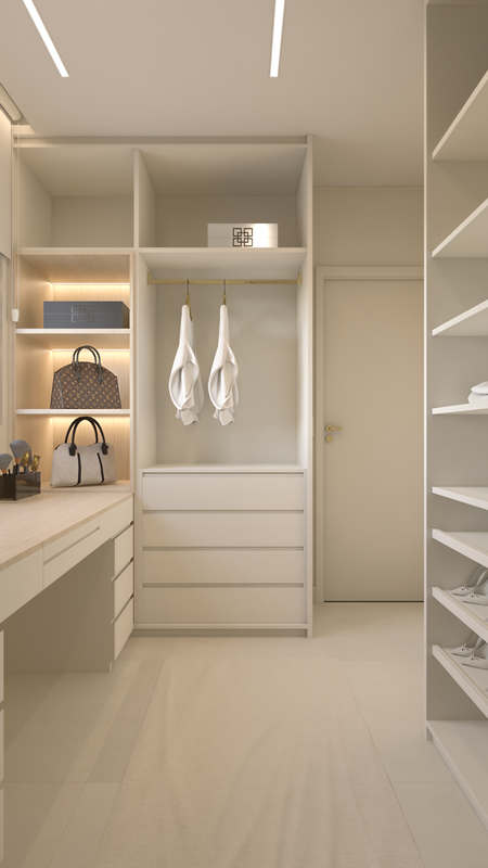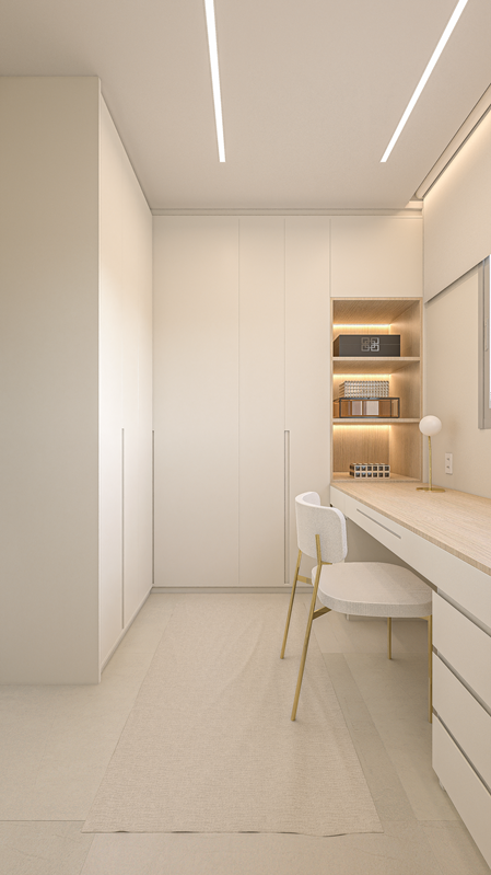 O projeto parte de uma base contemporânea e refinada, explorando linhas limpas e uma paleta elegante que reforça a sensação de ordem e serenidade visual. A composição privilegia equilíbrio e leveza, criando ambientes que expressam maturidade estética e personalidade.