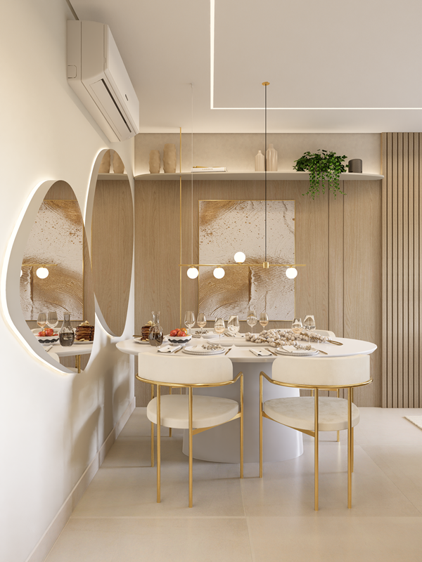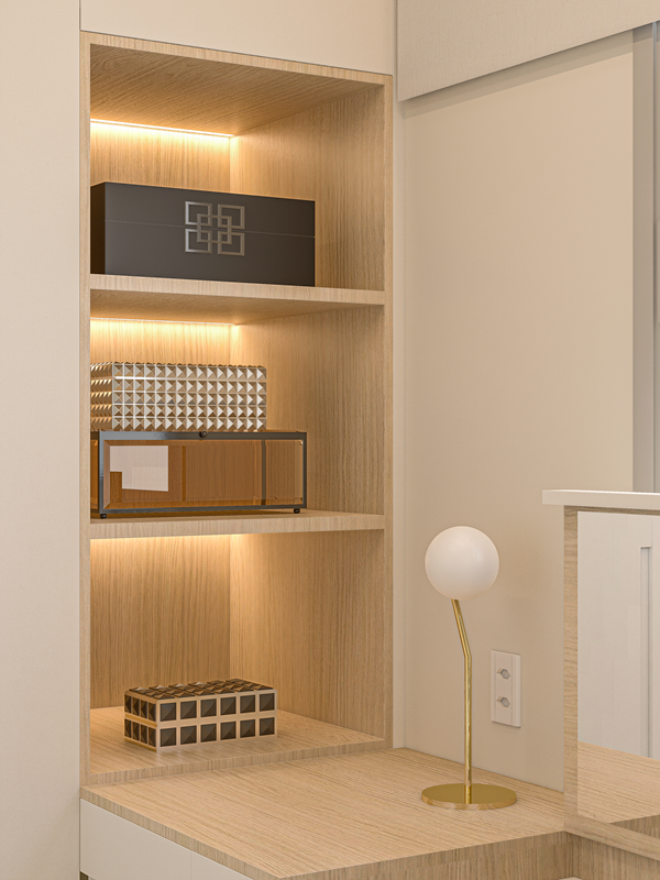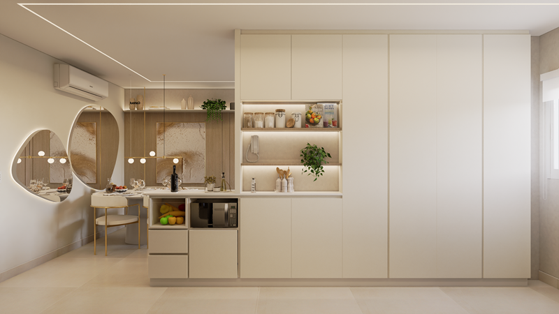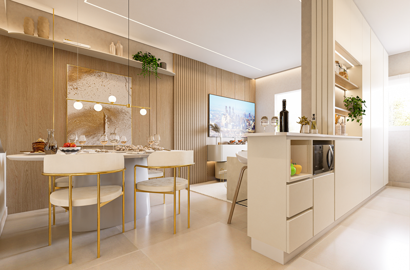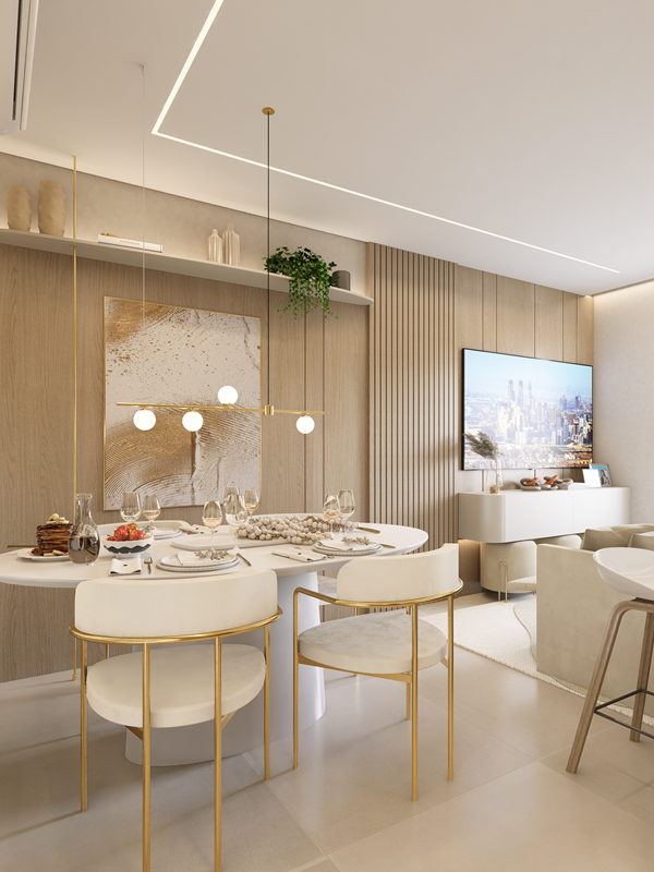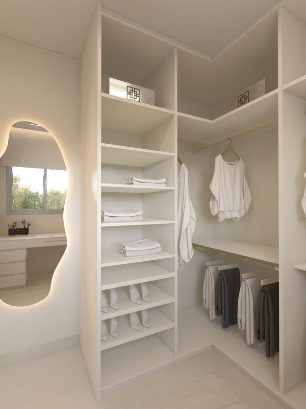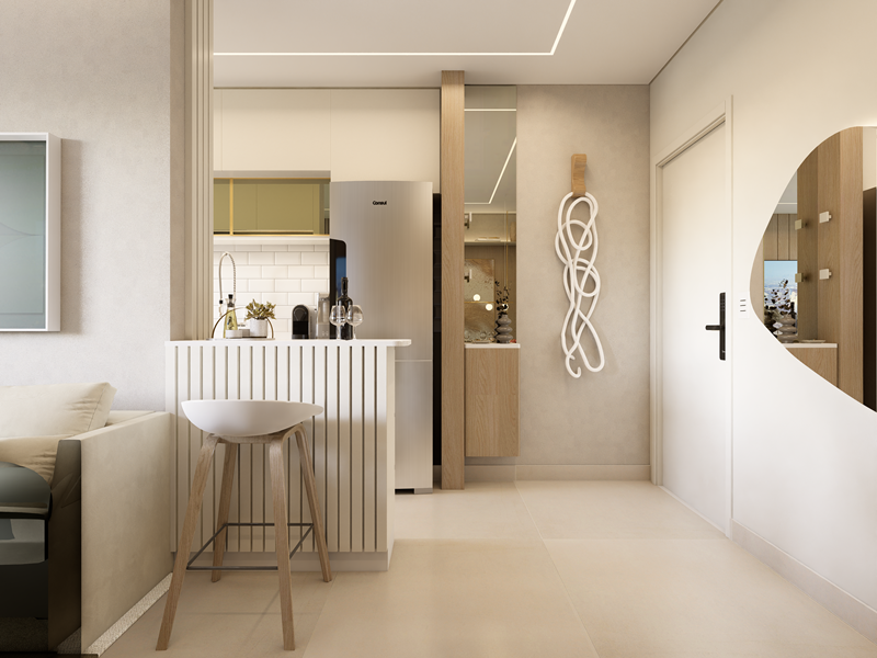 O projeto parte de uma base contemporânea e refinada, explorando linhas limpas e uma paleta elegante que reforça a sensação de ordem e serenidade visual. A composição privilegia equilíbrio e leveza, criando ambientes que expressam maturidade estética e personalidade.